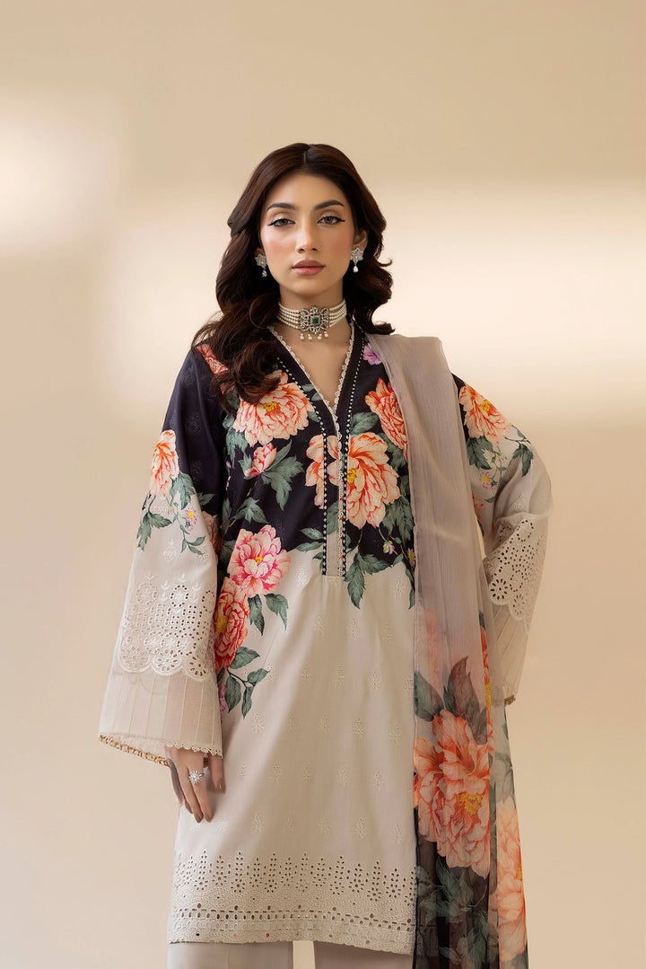 - Schiffli Embroidered & Printed Slub Shirt 1-Pc