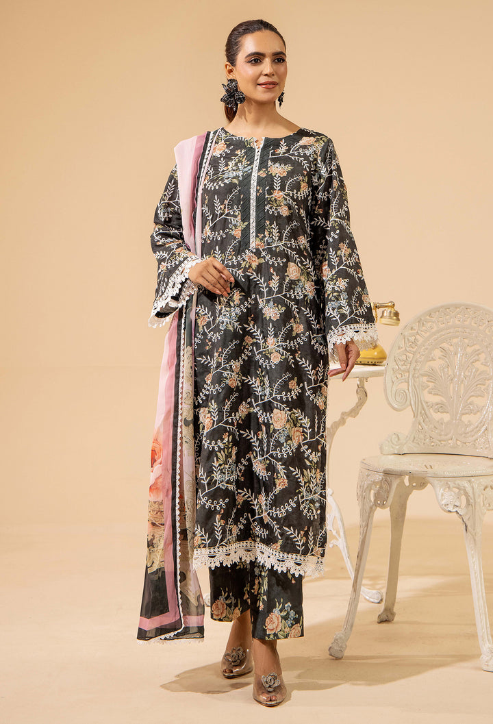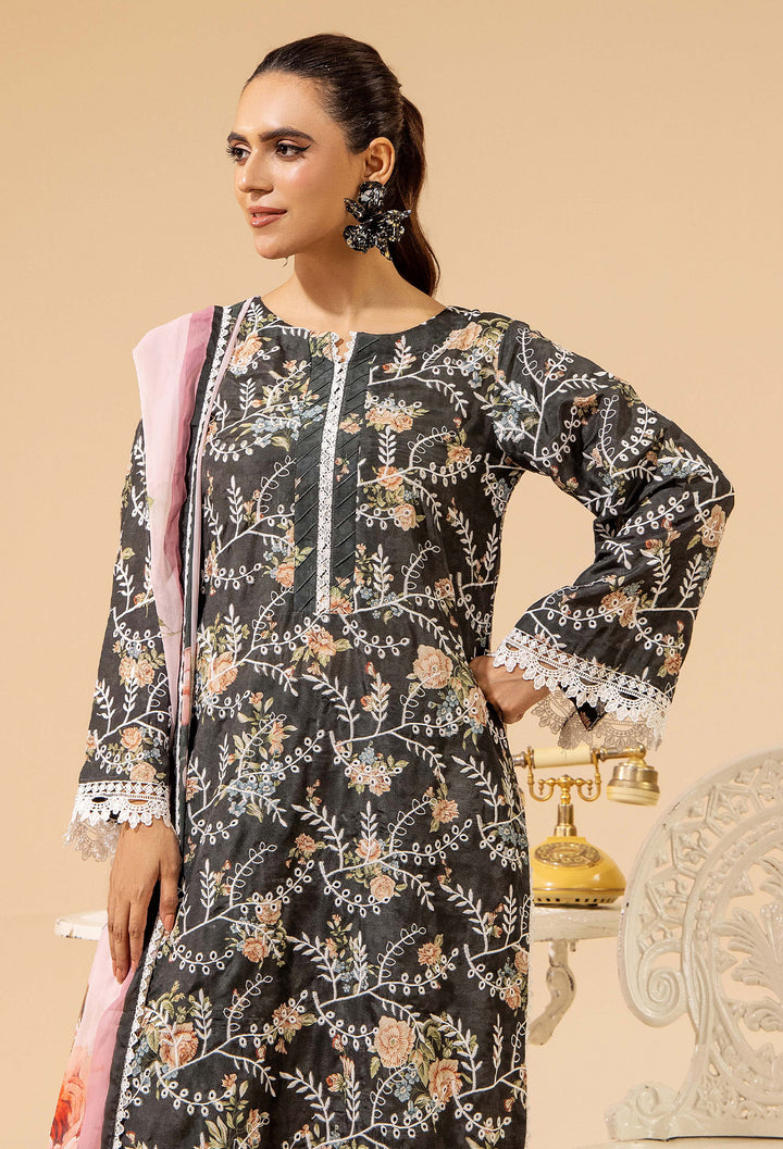 - Printed & EMB Chikankaari Satin Lawn Front-1PC