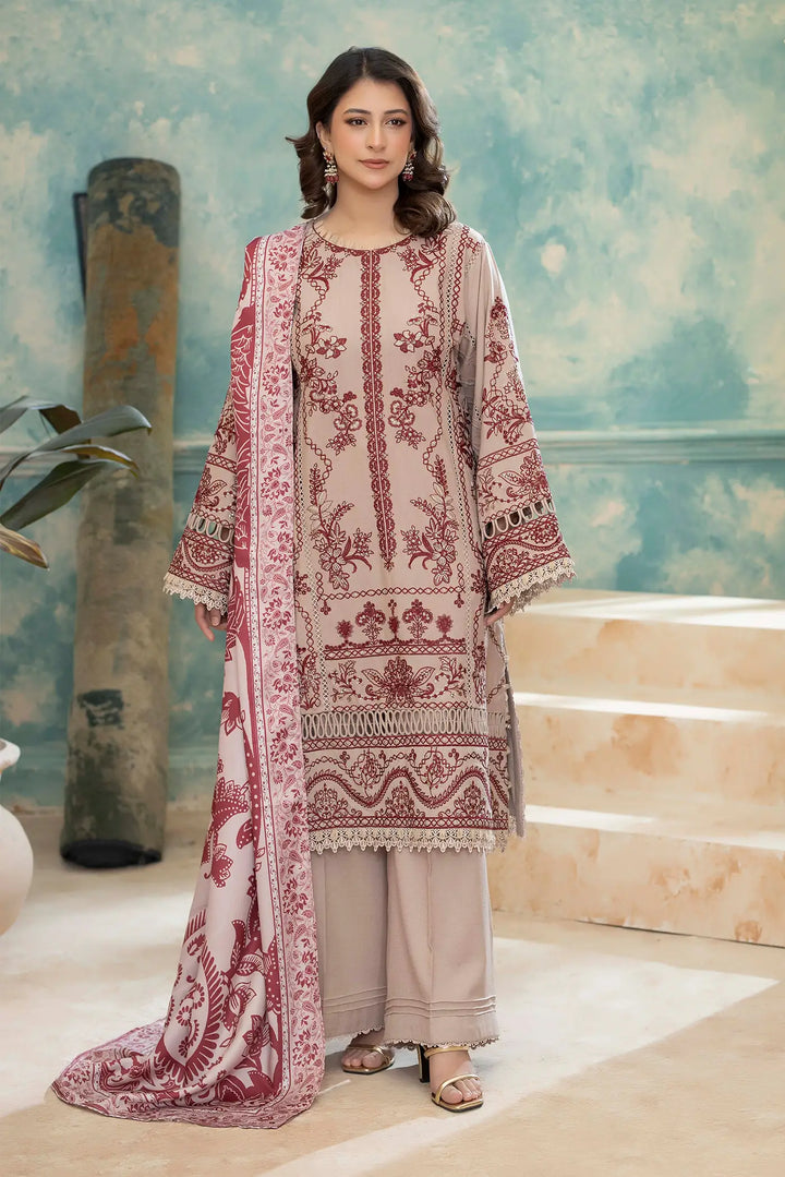 - Unstitched Embroidered Dhanak Shirt 1-Pc