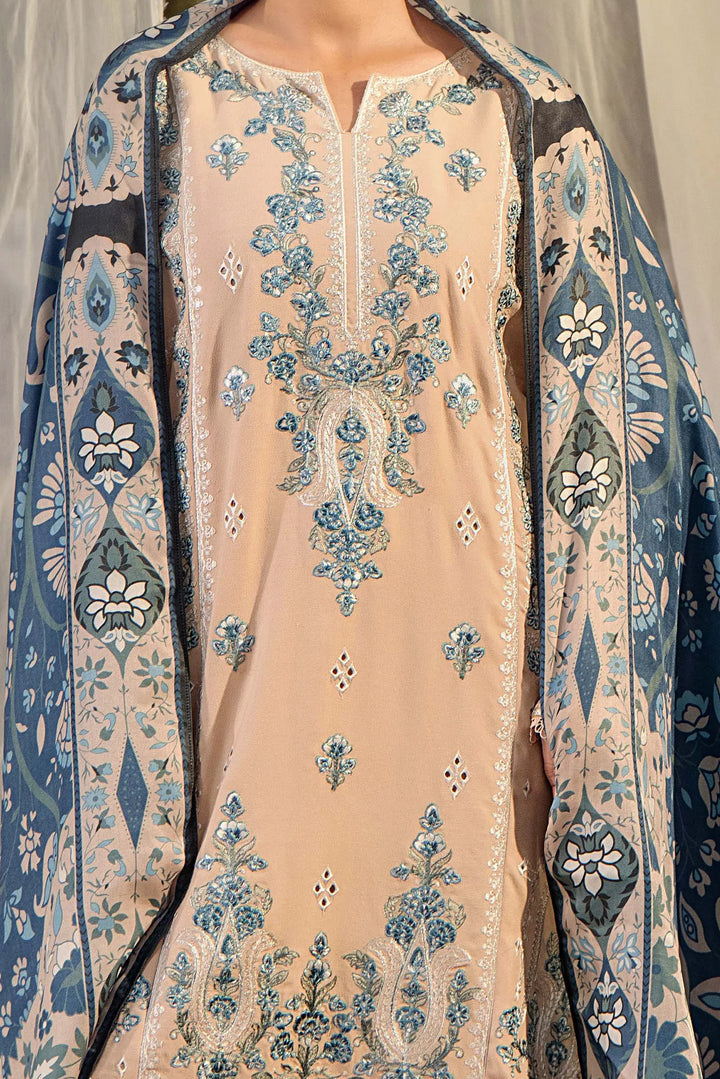 - Unstitched Embroidered Dhanak Shirt 1-PC