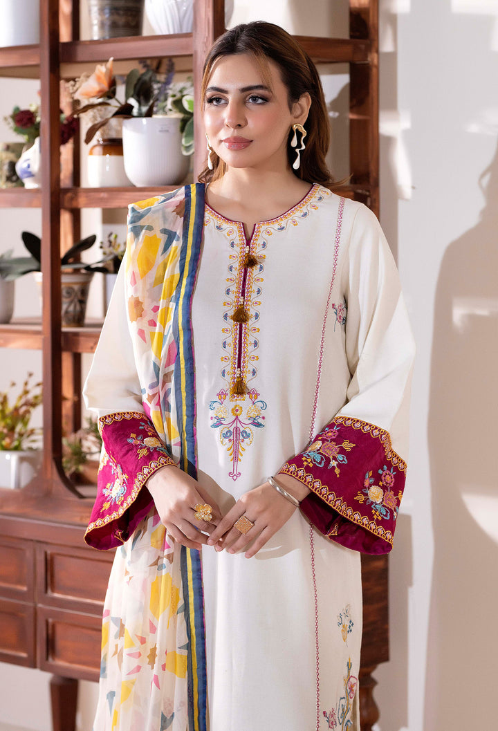 - Embroidered Dhanak Shirt 1-Pc